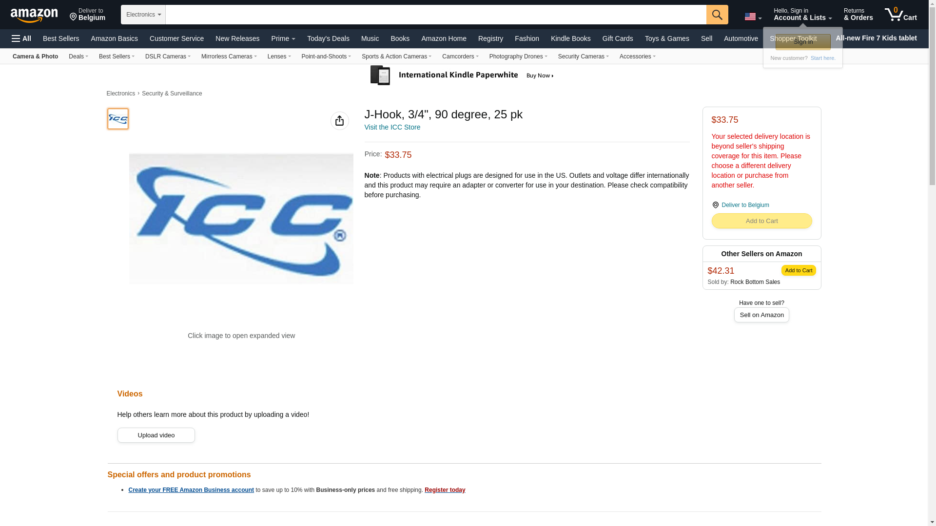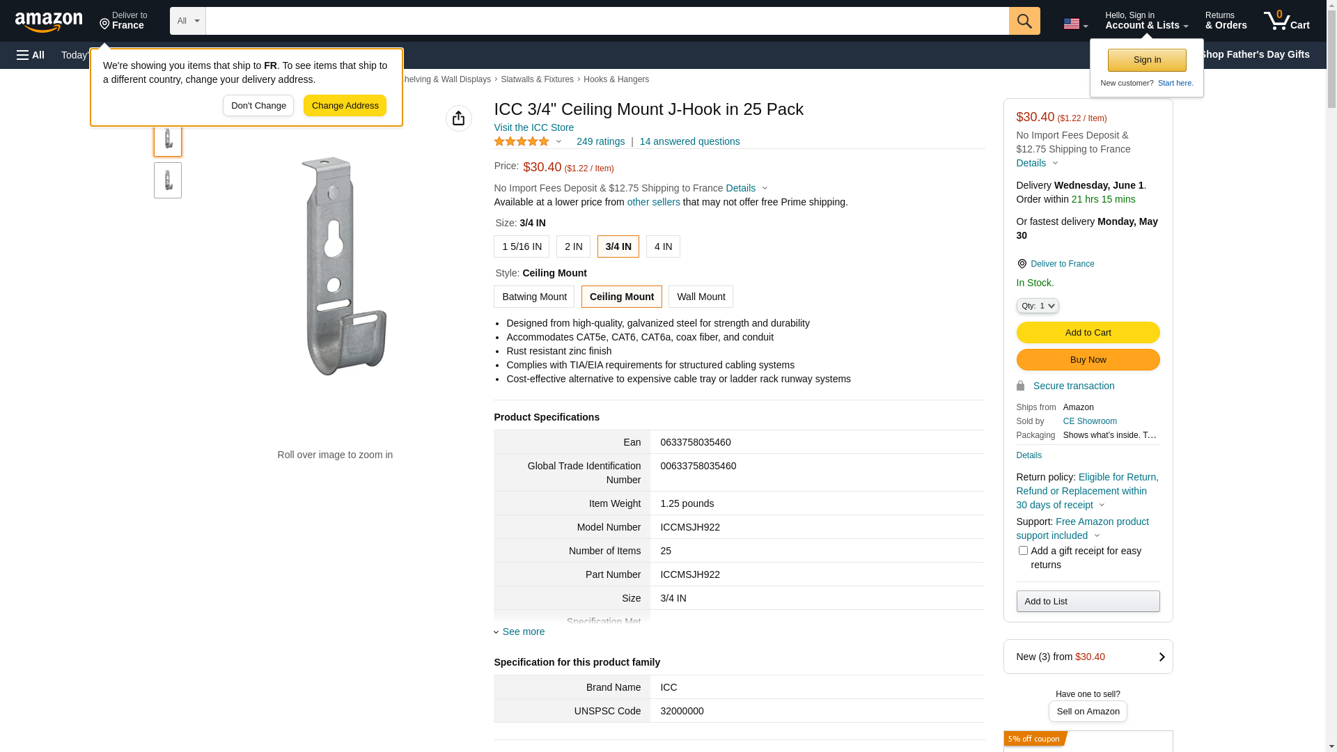 ICC 3/4" Ceiling Mount J-Hook in 25 Pack