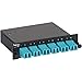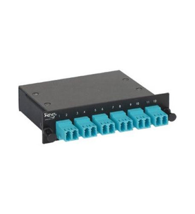 ICC Classic LC-MPO Fiber Optic LGX Compatible Cassette with Aqua Multimode Adapters and 12 10G OM3 Fibers