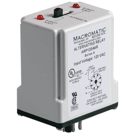 Alternating Relay, Spdt, 120Vac, 10A, 8 Pin