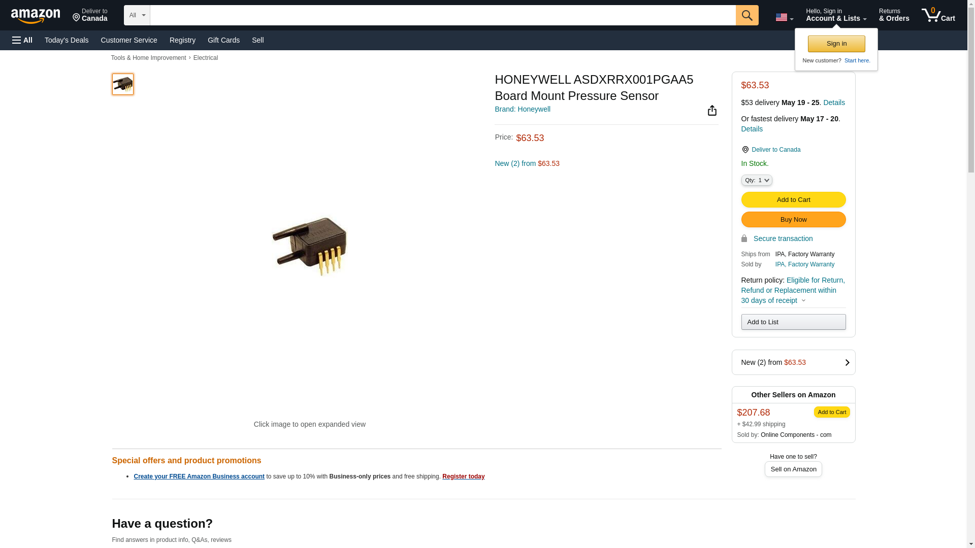 Honeywell Pressure Sensor - ASDXRRX001PGAA5