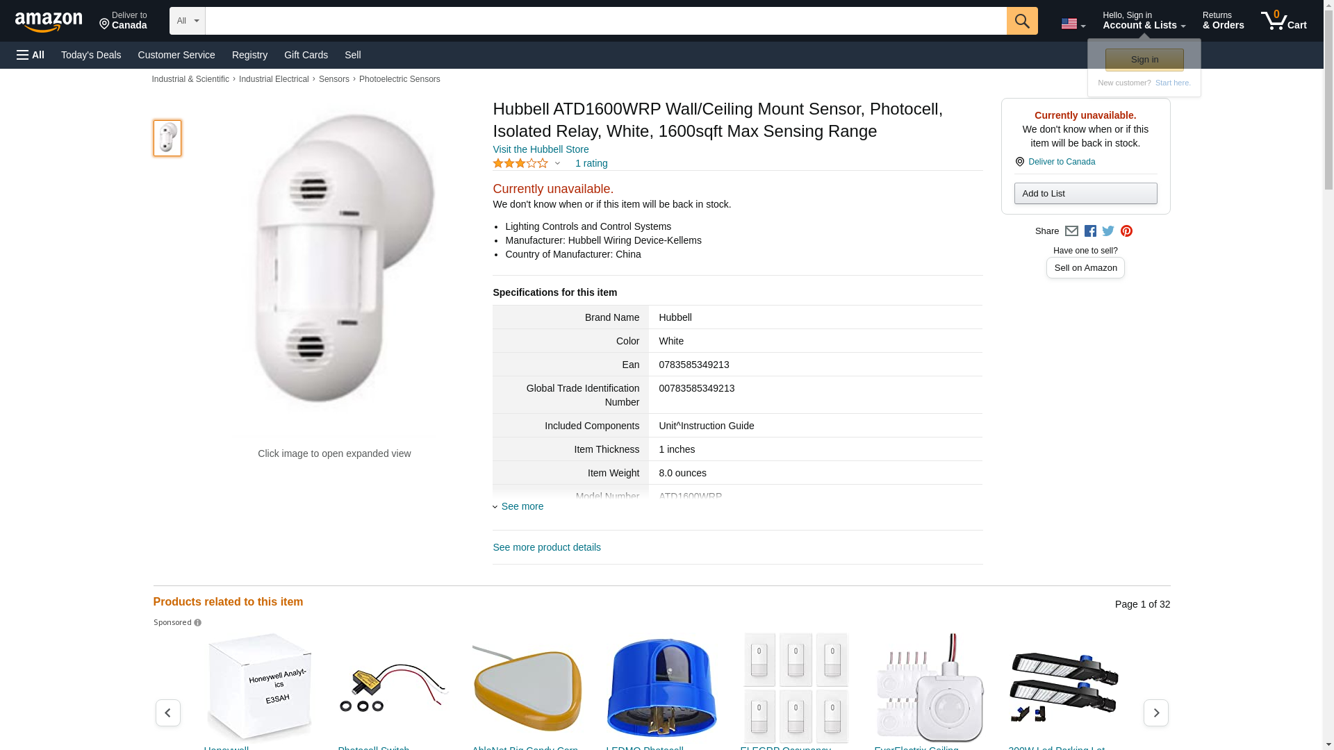 Hubbell ATD1600WRP Wall/Ceiling Mount Sensor, Photocell, Isolated Relay, White, 1600sqft Max Sensing Range