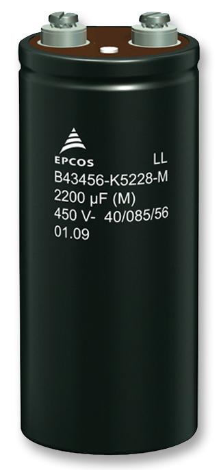 CAP, ALU ELEC, 4700UF, 400V, SCREW; Capacitance:4700µF; Voltage Rating:400V; Product Range:B43456 Series; Capacitance Tolerance:± 20%; Capacitor Terminals:Screw; Lifetime @ Temperature:12000 hours @ 85°C; Polarity:Polar; ESR:0.034ohmRoHS Compliant: Yes