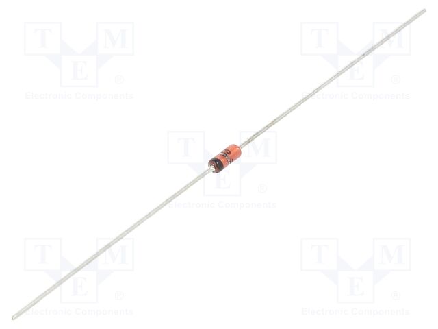 EU RoHS: Compliant with Exemption ECCN (US): EAR99 Part Status: Active HTS: 8541.10.00.80 Automotive: Yes PPAP: Unknown Type: Small Signal Switching Diode Maximum DC Reverse Voltage (V): 30 Configuration: Single Peak Reverse Repetitive Voltage (V): 40 Maximum Continuous Forward Current (A): 0.2 Peak Non-Repetitive Surge Current (A): 2 Peak Forward Voltage (V): 1@0.1A Peak Reverse Current (uA): 0.003 Maximum Junction Ambient Thermal Resistance: 350K/W Maximum Diode Capacitance (pF): 3 Minimum Operating Temperature (°C): -65 Maximum Operating Temperature (°C): 175 Packaging: Ammo Supplier Temperature Grade: Automotive Supplier Package: DO-35 Pin Count: 2 Standard Package Name: DO-204-AH Diameter: 1.7(Max) Mounting: Through Hole Package Length: 3.9(Max) PCB changed: 2 Lead Shape: Through Hole