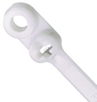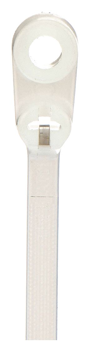 Each of these nylon ties features an adjustable, stainless-steel locking barb to secure wires and cables. The curved tip also helps to provide fast initial threading.<br /><br /> Item: Cable Tie<br /> Length - Cable Tie: 15.50"<br /> Approximate Length - Cable Tie: 15-1/2"<br /> Indoor/Outdoor: Indoor<br /> Temp. Range: -76 Degrees to 185 Degrees F<br /> Locking Style: Stainless Steel Barb<br /> Width - Cable Tie: 0.27"<br /> Thickness: 0.06"<br /> Tensile Strength - Cable Tie: 120 lb.<br /> Max. Bundle Dia.: 4.00"<br /> Color - Cable Tie: Natural<br /> Material: Nylon 6/6<br /> Basic Material - Cable Tie: Nylon<br /> UL Type: 2<br /> Mounting Style: Mounting Head<br /> Design - Cable Tie: Mountable<br /> Tool Code: F<br /> Metal Detectable: No<br /> Standards: UL 62275 (Type 2, 21), CSA, CE, RoHS, Plenum AH-2<br /> Mounting Hole Size - Cable Tie: 1/4"<br /> Cable Tie Duty: Heavy Duty<br />