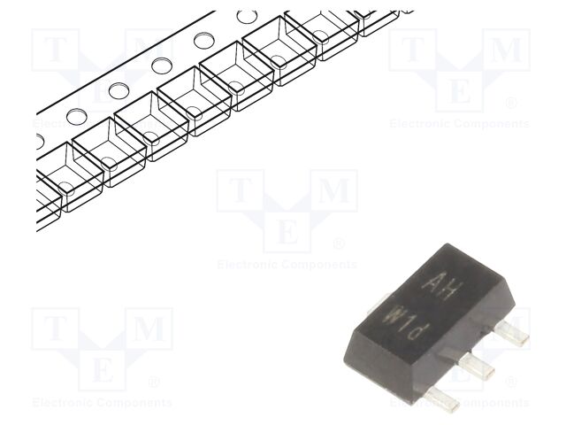 | Feature | <b>Price For:</b> Pack of 100<b>Order Unit:</b> Tape & Reel Full\xa01 <b>Collector Emitter Voltage V(br)ceo:</b>: -80 <b>DC Collector Current:</b>: -1 <b>DC Current Gain hFE:</b>: 63 <b>MSL:</b>: MSL 1 - Unlimited <b>No. of Pins:</b>: 3 <b>Operating Temperature Max:</b>: 150 <b>Operating Temperature Min:</b>: -65 <b>Power Dissipation Pd:</b>: 500 <b>SVHC:</b>: No SVHC (17-Dec-2014) <b>Transistor Case Style:</b>: SOT-89 <b>Transistor Polarity:</b>: PNP |
