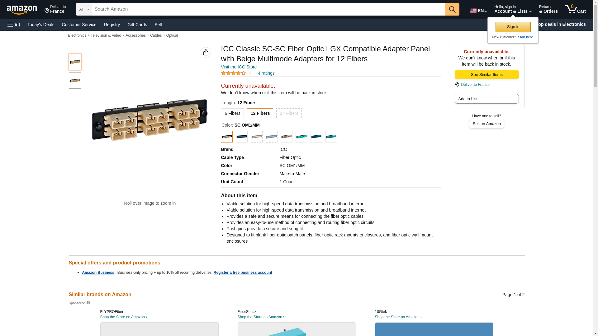 ICC Classic SC-SC Fiber Optic LGX Compatible Adapter Panel with Beige Multimode Adapters for 12 Fibers