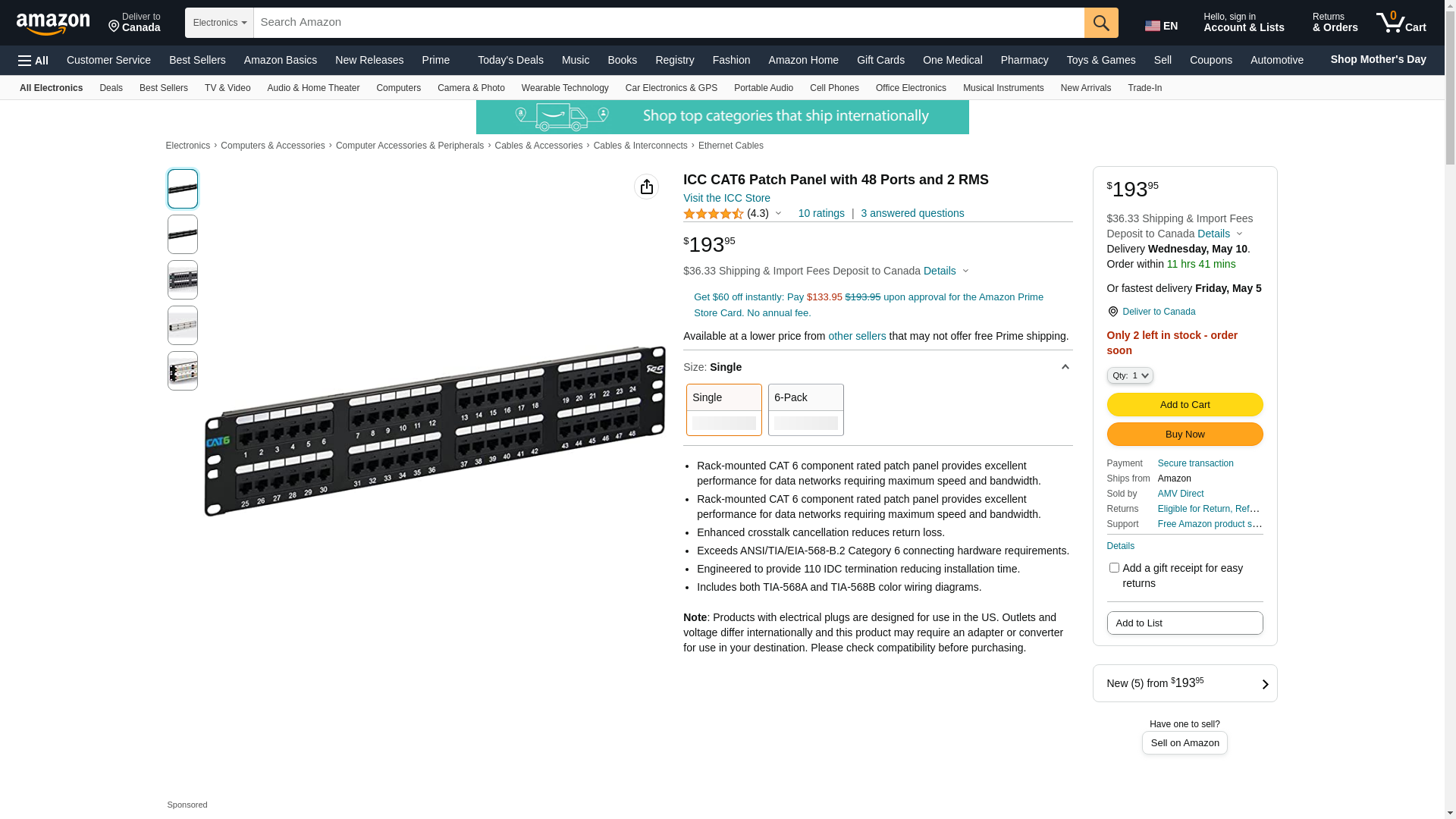 ICC's Category 6 (CAT6) 48-port, 2 rack mount spaces (RMS) patch panels surpass industry requirements for Category 6 performance. These horizontal patch panels are designed with a rear 110 IDC's for quick and easy punch-down termination and come integrated with a universal label allowing for either 568-A/B wiring. Package includes mounting screws.FeaturesRack-mounted CAT 6 component rated patch panel provides excellent performance for data networks requiring maximum speed and bandwidth.Enhanced crosstalk cancellation reduces return loss.Exceeds ANSI/TIA/EIA-568-B.2 Category 6 connecting hardware requirements.Engineered to provide 110 IDC termination reducing installation time.Includes both TIA-568A and TIA-568B color wiring diagrams.Backwards compatible with all lower rated category components.Designed to fit all standard 19" racks and cabinets.2 rack mount spaces (RMS).Used with CAT6 patch cords, 110 punch down tool, and 4-pair 110 punch down tool.UL listed.