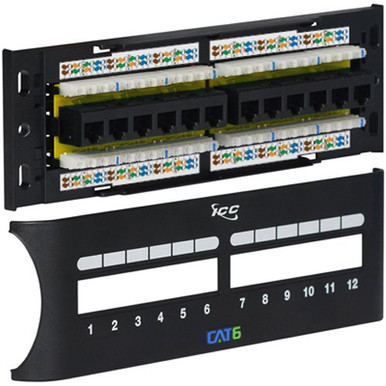 <p>ICC's 12-Port Category 6 Front Access Patch Panels are designed to be wall and rack mountable. These patch panels exceed TIA-568-C.2 performance standards. Also, the low profile space saving design is ideal for smaller installations with front access to RJ-45 ports and 110-Type connectors that allows quick moves, adds, and changes (MACs).</p><p><strong>Features</strong></p><ul><li>Wall mounted CAT6 component rated patch panel.</li><li>Enhanced crosstalk cancellation reduces return loss.</li><li>Exceeds TIA-568-C.2 Category 6 connecting hardware requirements.</li><li>Engineered to provide 110 IDC termination reducing installation time.</li><li>Used with CAT6 patch cords, 110 punch down tool, and distribution racks.</li><li>Includes installation instructions.</li></ul>