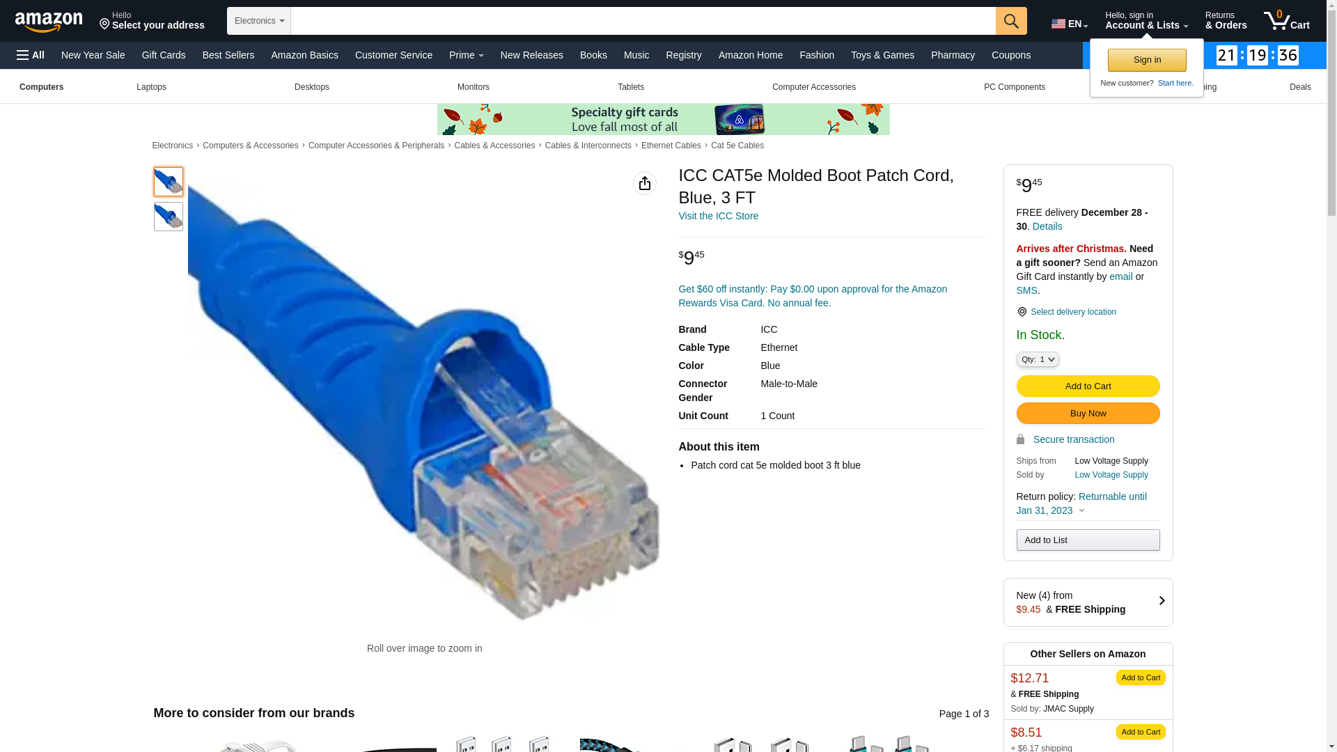 | Feature | ICPCS903BL - 3 Cat5E PC Blue |