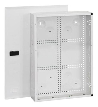 These residential enclosures are designed for homes, multi-unit buildings, and retrofitting existing homes. ICC's residential enclosures are competitively priced and provide all features and benefits required for managing and installing structured cabling for connectivity applications within the residence. It has space to accommodate multiple modules, knockouts for cable routing, padlock option for access restriction, and is designed for either surface or in-wall mounting. Our residential solutions enable home builders and residential installers to provide affordable, quality residential connectivity that home buyers expect. This enclosure is designed to serve as the central distribution point for voice, data, video, audio, or security services for smaller residential structured wiring systems. Features Designed with steel construction, white powder coated, lightweight, and sturdy. Designed to serve as the central distribution point for voice, data, video, audio, or security services for smaller residential structured wires. Allows for internal modules to be mounted horizontally or vertically. Integrated snap-in module system enables users to quickly insert. Supports up to 6 Cable Management Rings. Includes a knockout for an optional AC power outlet (not included) to provide power distribution. Fits between 16” studs with 8 internal module mounting spaces. Designed with a door latch and an optional door lock knockout. Hinged door and Net Media Center insert are reversible. Accommodates all residential modules. Optional accessories can be used, including distribution center rubber grommets, distribution center plastic grommets, and distribution center door locks. Net Media Center enclosure combos are not designed to be installed in firewall. Complies with UL 1863, TIA-568-C, TIA-570-B, and TIA-607 standards.