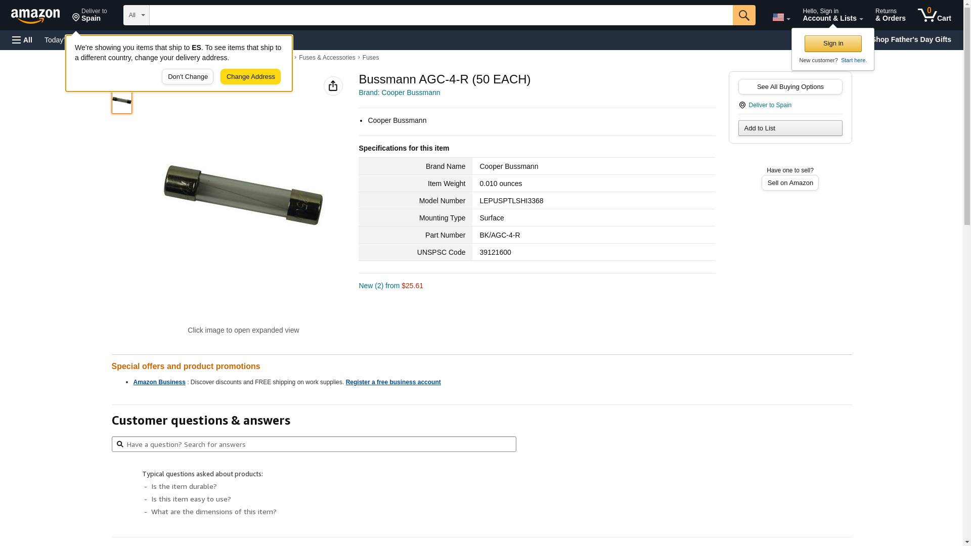 | AGC-4-BUSSMANN | 1 | -2 | 1 | 1 @ $1.42 | |