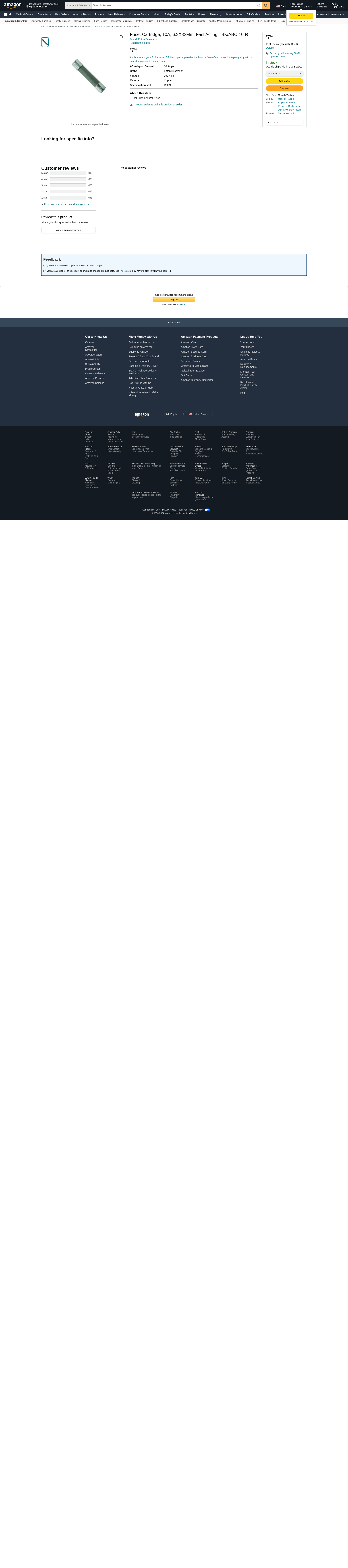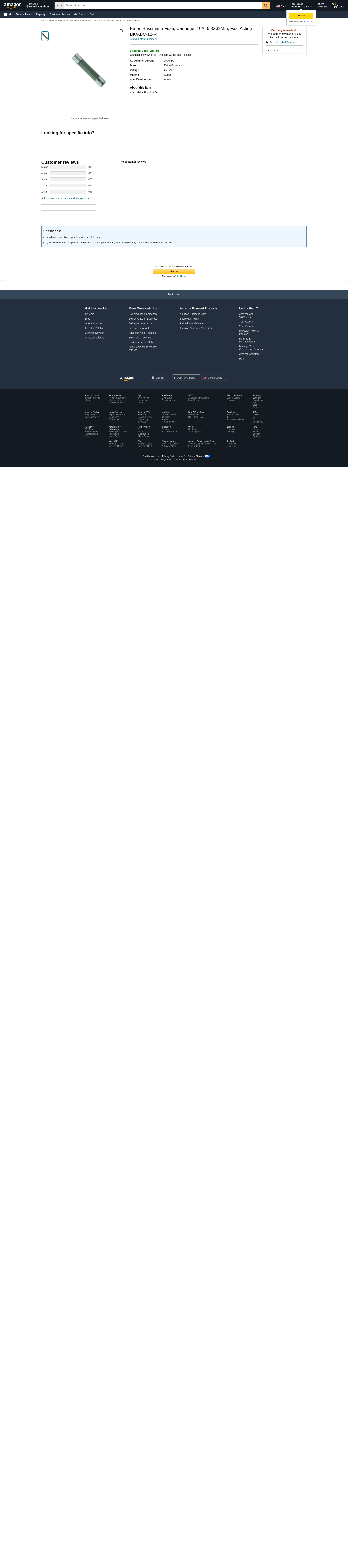 Eaton Bussmann Fuse, Cartridge, 10A, 6.3X32Mm, Fast Acting - BK/ABC-10-R