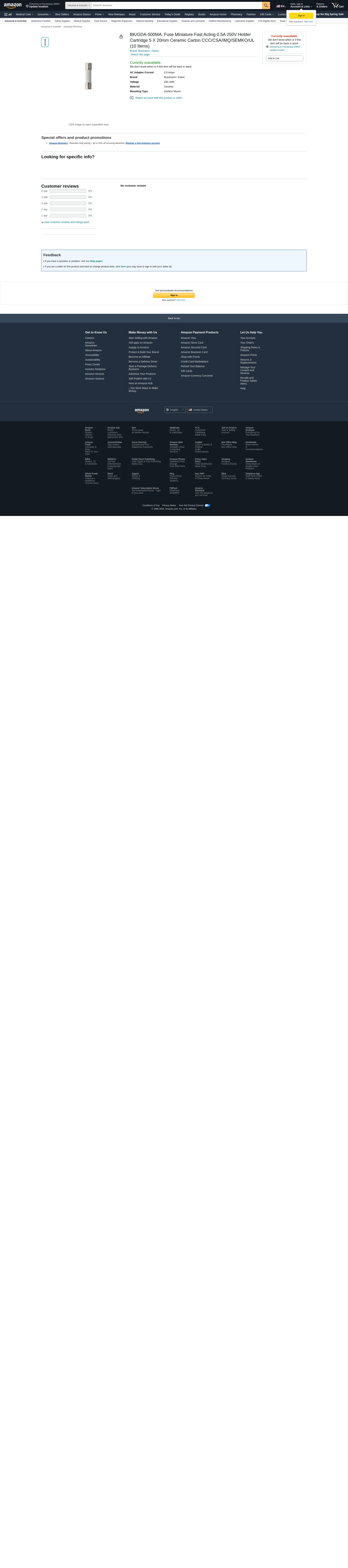 Eaton Bussmann Fuse, Cartridge, 500Ma, 5X20mm, Fast Act - BK/GDA-500MA