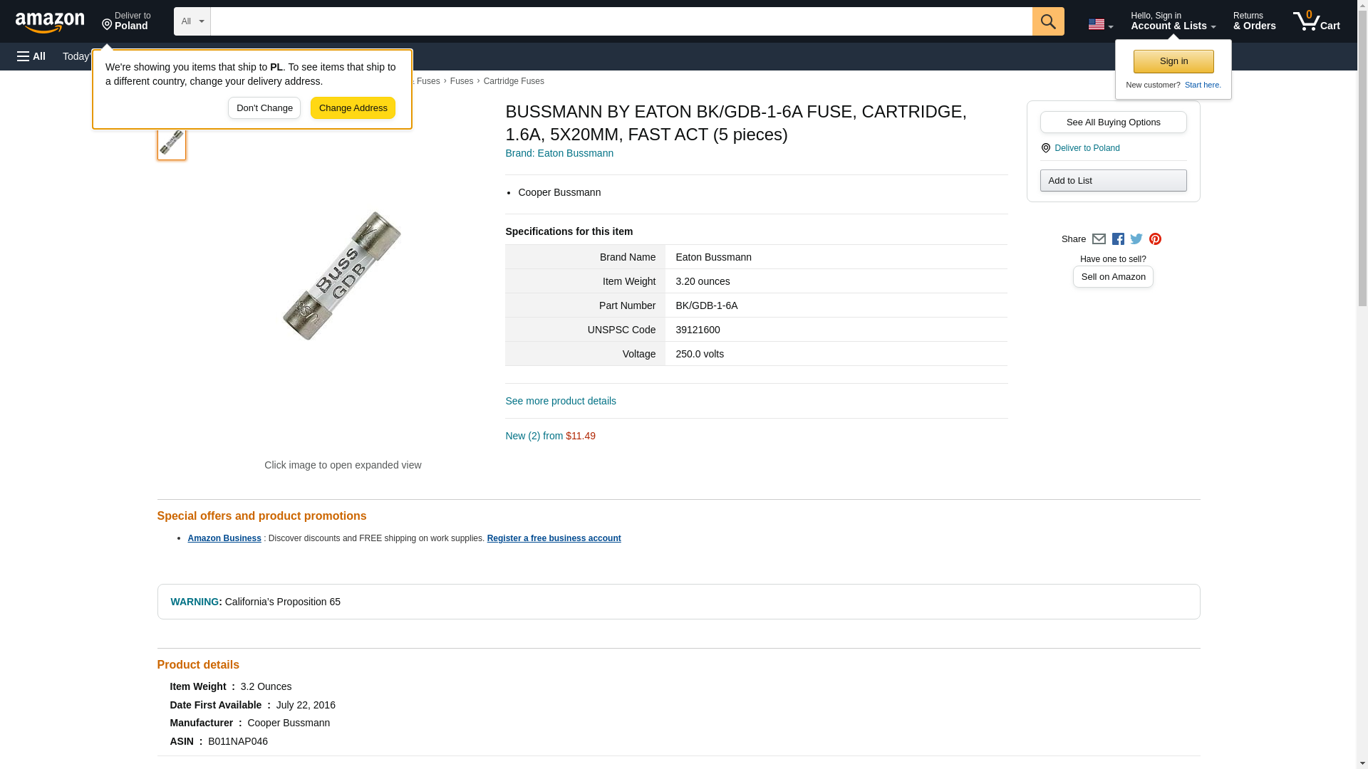 | Feature | COOPER BUSSMANN BK/GDB-1-6A FUSE, CARTRIDGE, 1.6A, 5X20MM, FAST ACT |