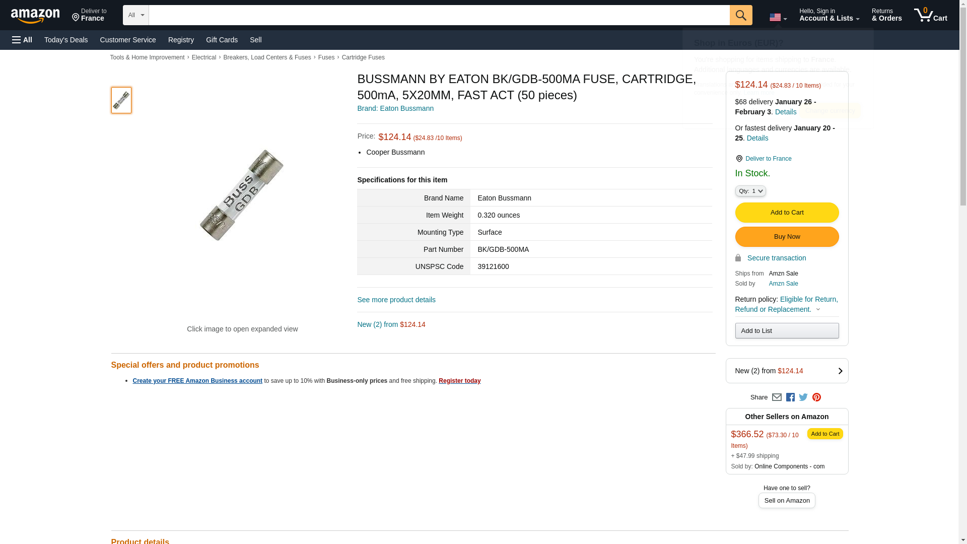 BUSSMANN BY EATON BK/GDB-500MA FUSE, CARTRIDGE, 500mA, 5X20MM, FAST ACT (50 pieces)