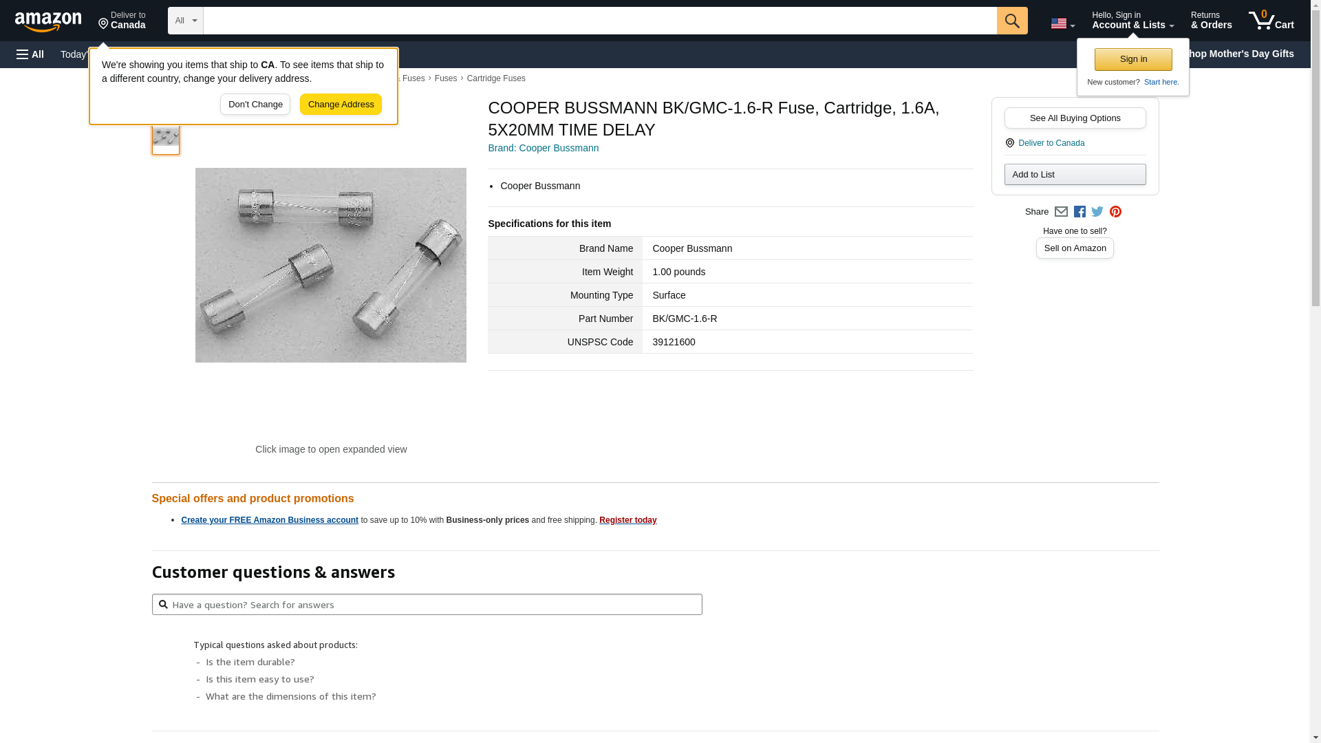 | GMC-1-6-R-BUSSMANN | 1 | -2 | 1 | 1 @ $1.71 | |