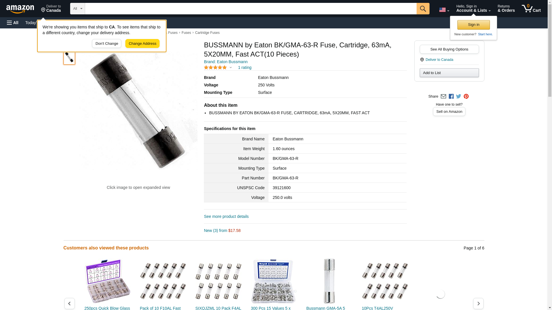 - Bussman GMA 63mA BUSS FA BK 100 BOX -R BK/GMA-63-R
