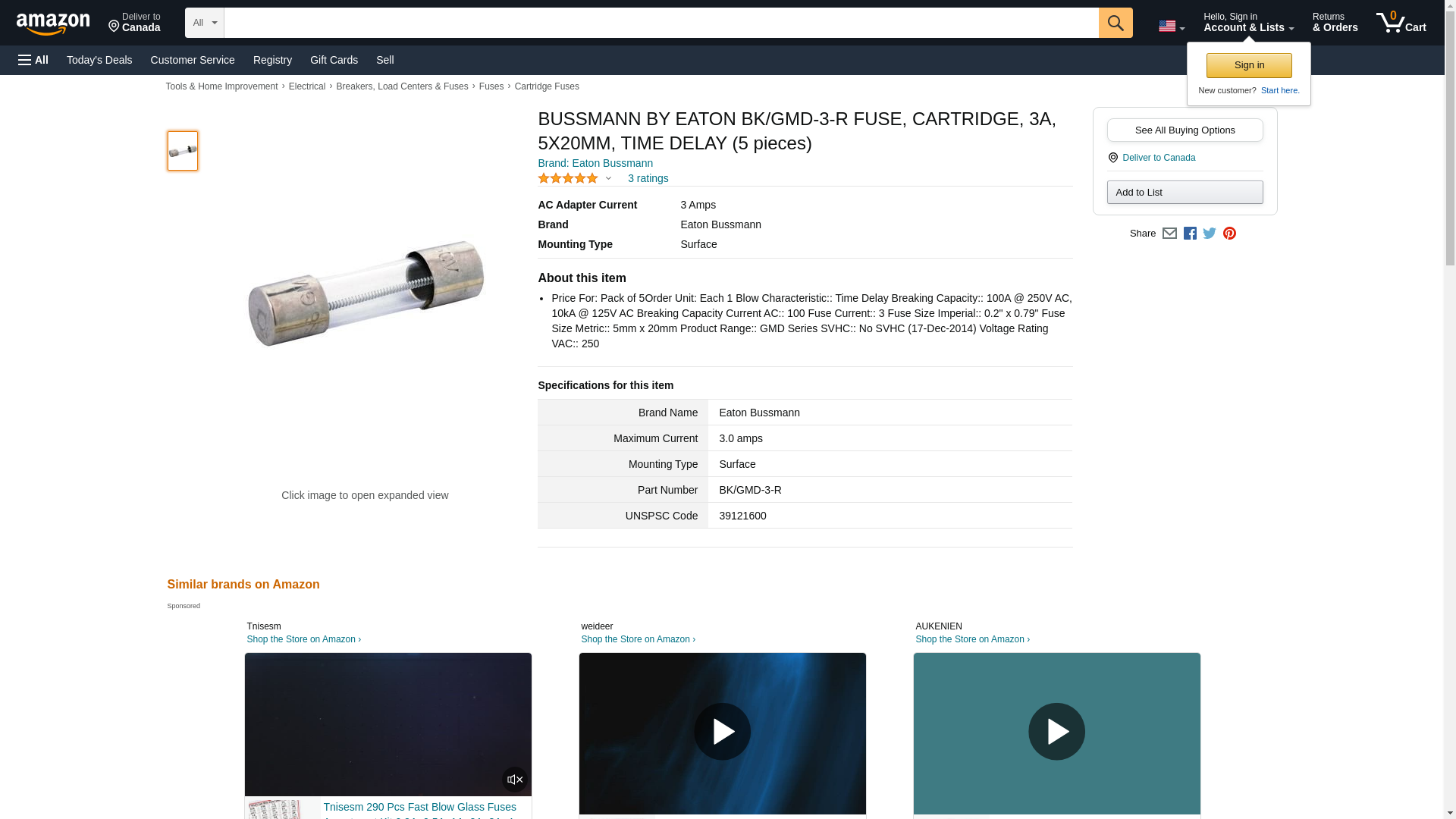 - Bussman BUSS SMALL DIMENSION FUSE BK/GMD-3-R
