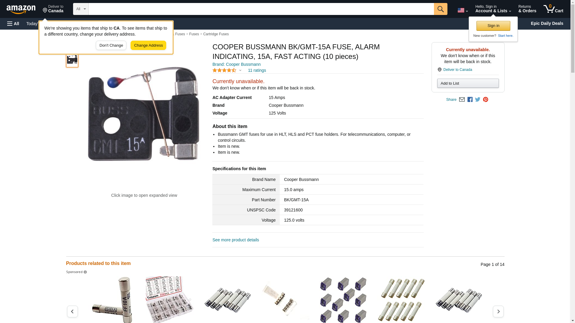 - Bussman BK/GMT-15A Buss Indicating Fuse