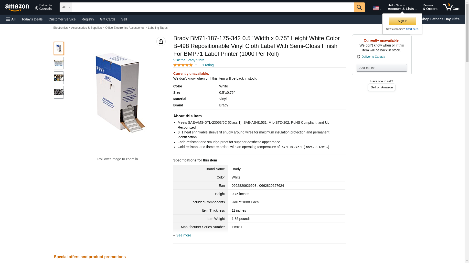 | bhid.com | BRADY BM71-187-175-342 | 1 | 1 | 1 @ $829.42 | |