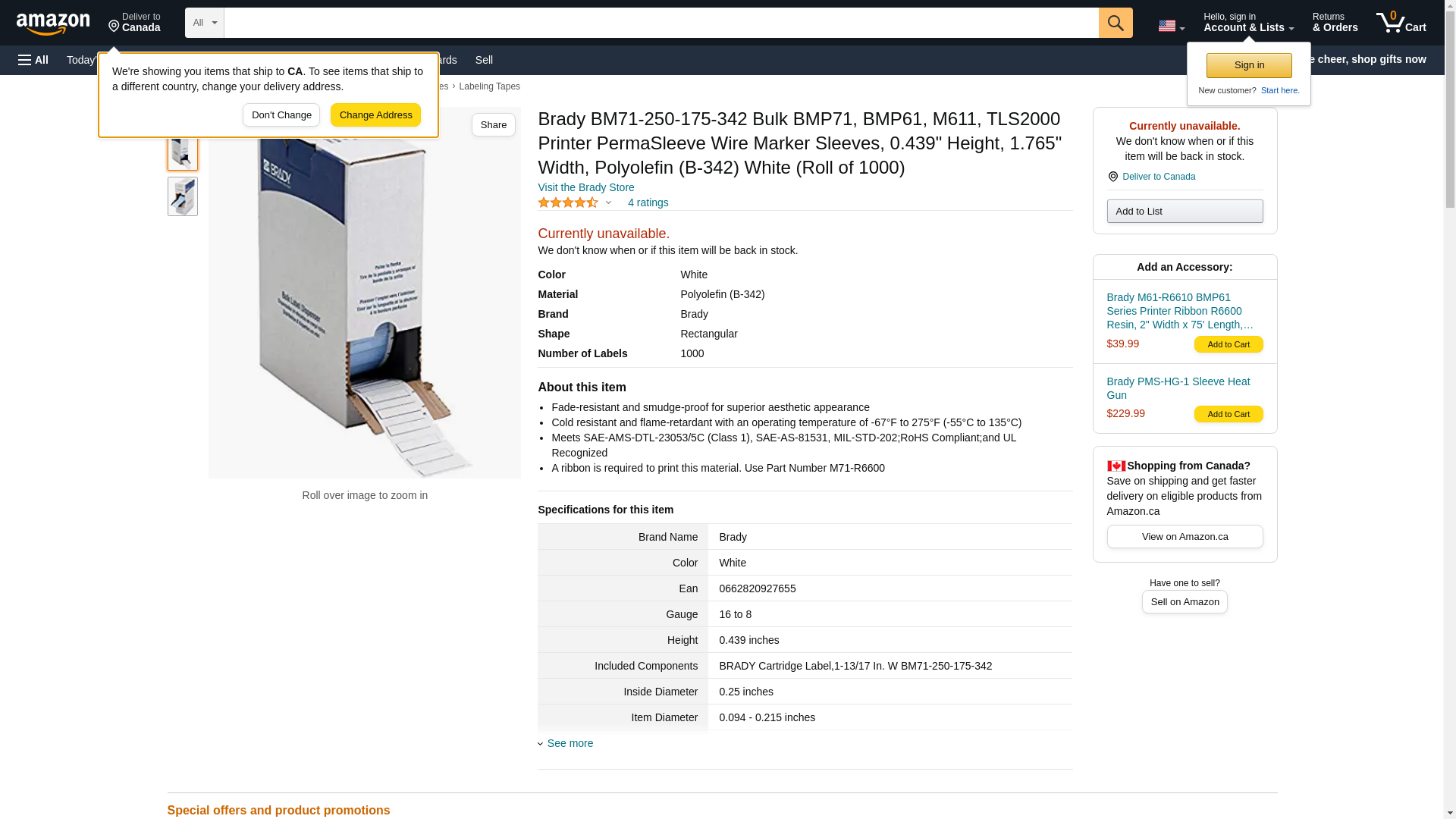 Brady BM71-250-175-342 Bulk BMP71, BMP61, M611, TLS2000 Printer PermaSleeve Wire Marker Sleeves, 0.439" Height, 1.765" Width, Polyolefin (B-342) White (Roll of 1000)
