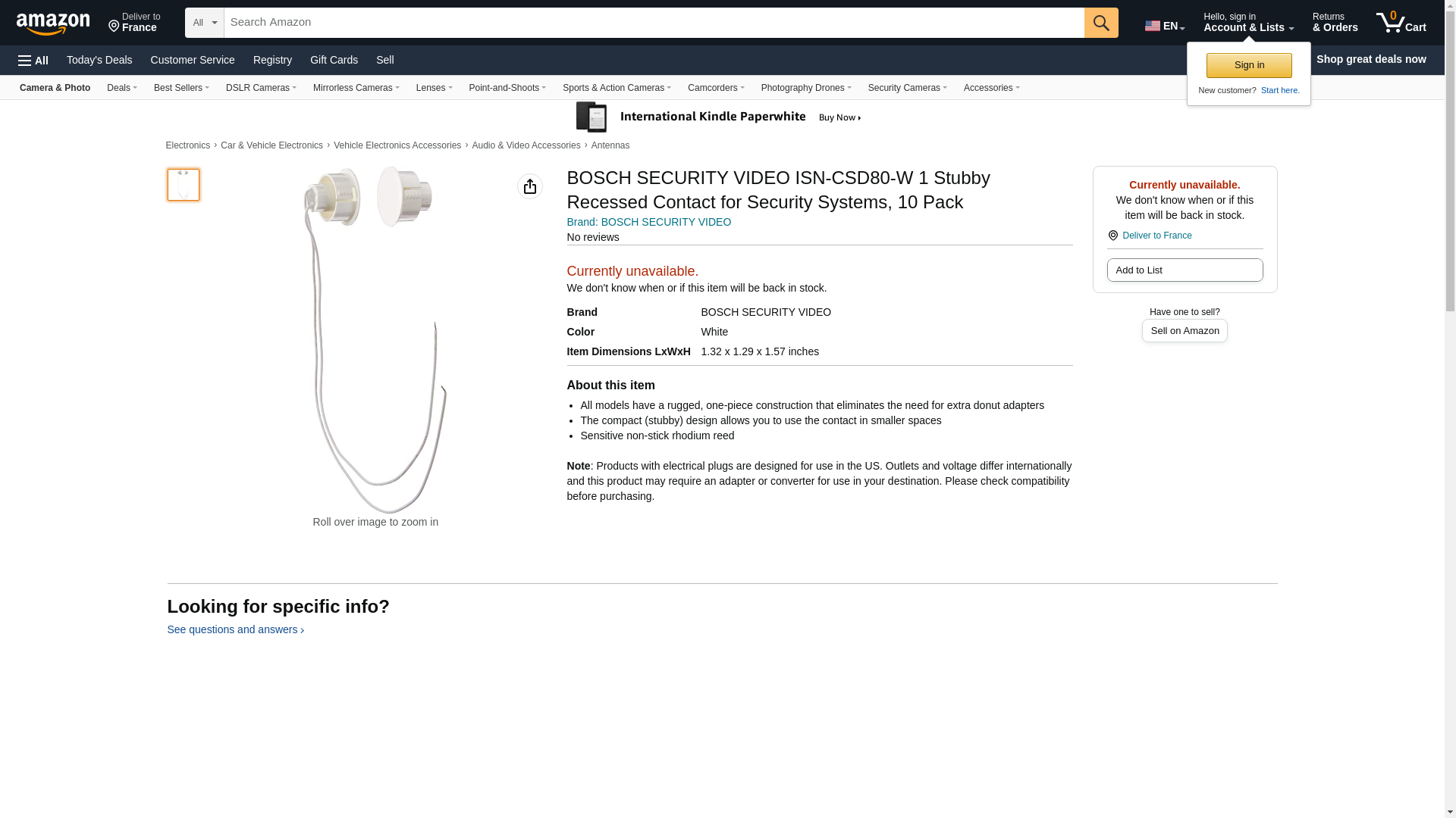 BOSCH SECURITY VIDEO ISN-CSD80-W 1 Stubby Recessed Contact for Security Systems, 10 Pack