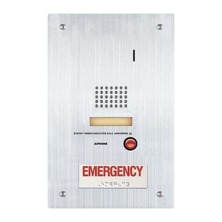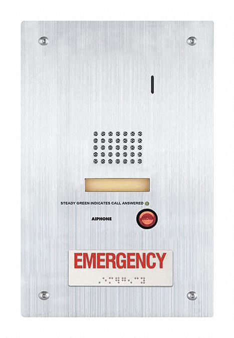 'Call Entrance Station, Indoor/Outdoor, Height (In.) 11-11/16, Width (In.) 7, Depth (In.) 2-1/2, Door Station Height (In.) 11-11/16, Door Station Width (In.) 7, Door Station Depth (In.) 2-1/2, Master Depth (In.) 11-11/16, Master Height (In.) 7, Master Width (In.) 2-1/2, Wiring Conductors CAT-5e, Wire Type CAT-5e, Power Source Central Control Unit, Voltage 24VDC, For Use With IS Series, Includes Mounting Hardware, Emergency Button, Braille, LED Call Status Indicator'