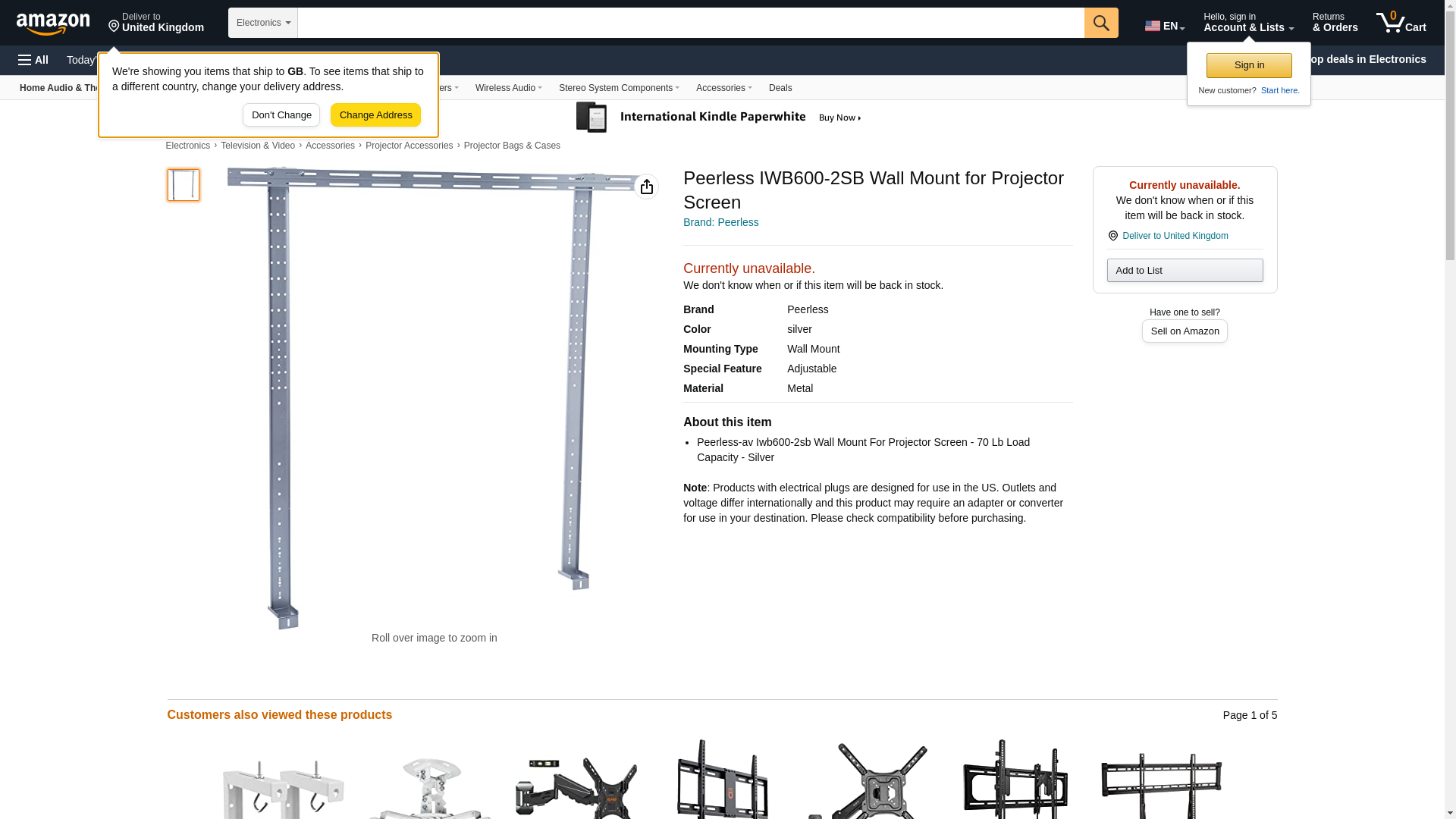 - Peerless-av Iwb600-2sb Wall Mount For Projector Screen - 70 Lb Load Capacity - Silver