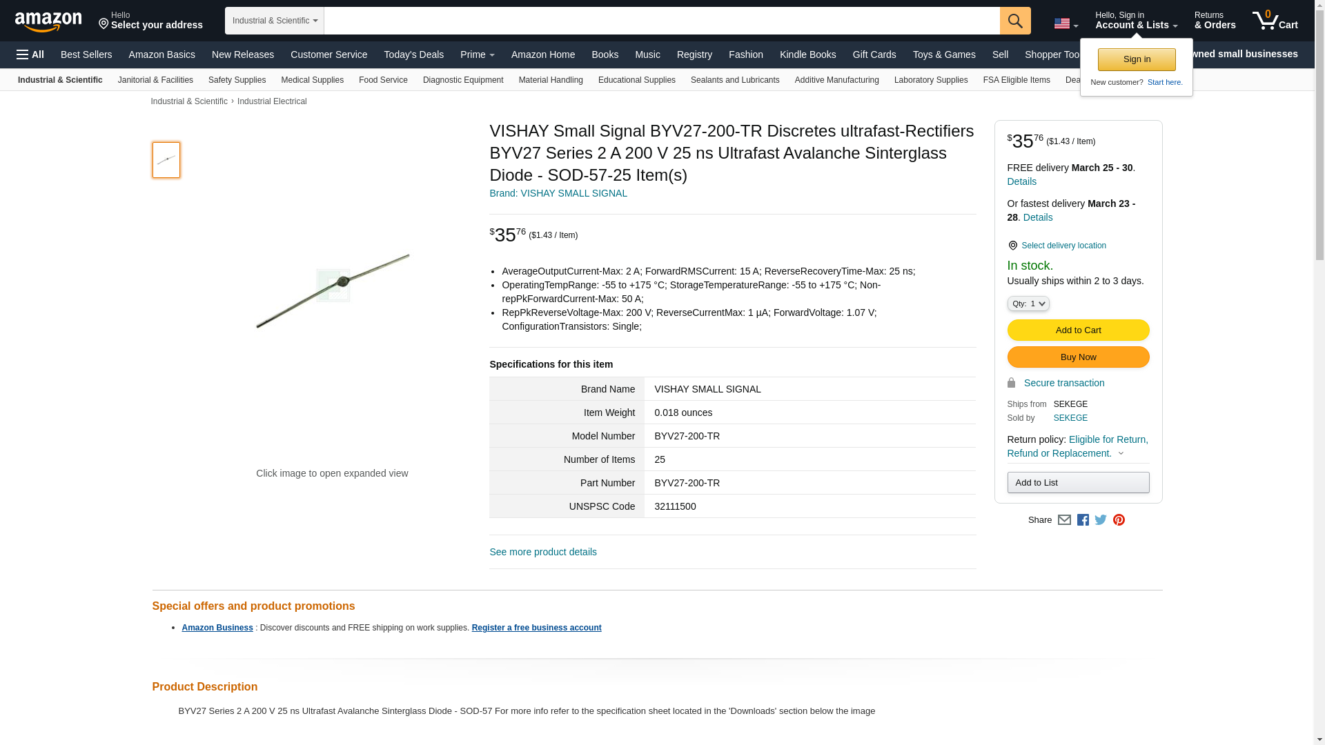 | BYV27-200-TR | 1 | 23606 | 1 | 1 @ $0.32, 10 @ $0.30, 100 @ $0.27, 1000 @ $0.25, 10000 @ $0.23 | |