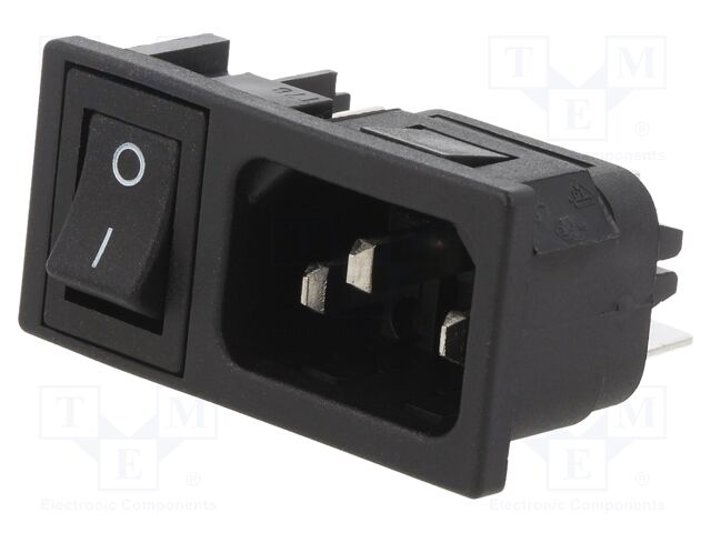 IEC, PLUG, 10 A; Connector Type:IEC C14; Current Rating:15A; Voltage Rating:250VAC; Fuse Holder:-; Fuse Size Held:-; Connector Terminals:Quick Connect; Connector Mounting:Snap-In, Flange Mount; IP Rating:-; Gender:Plug RoHS Compliant: Yes