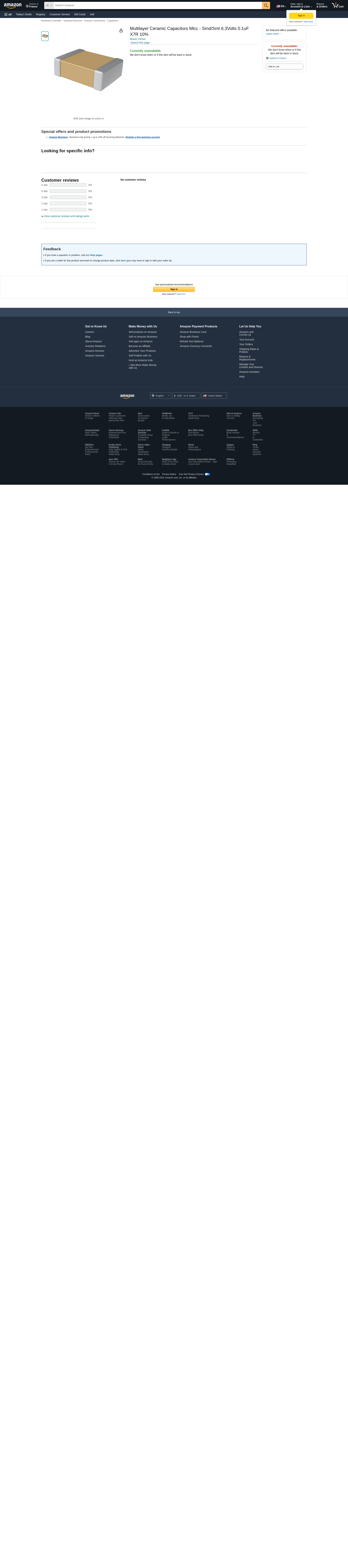 Multilayer Ceramic Capacitors MLCC - SMD/SMT 6.3volts 0.1uF X7R 10% (5000 pieces)