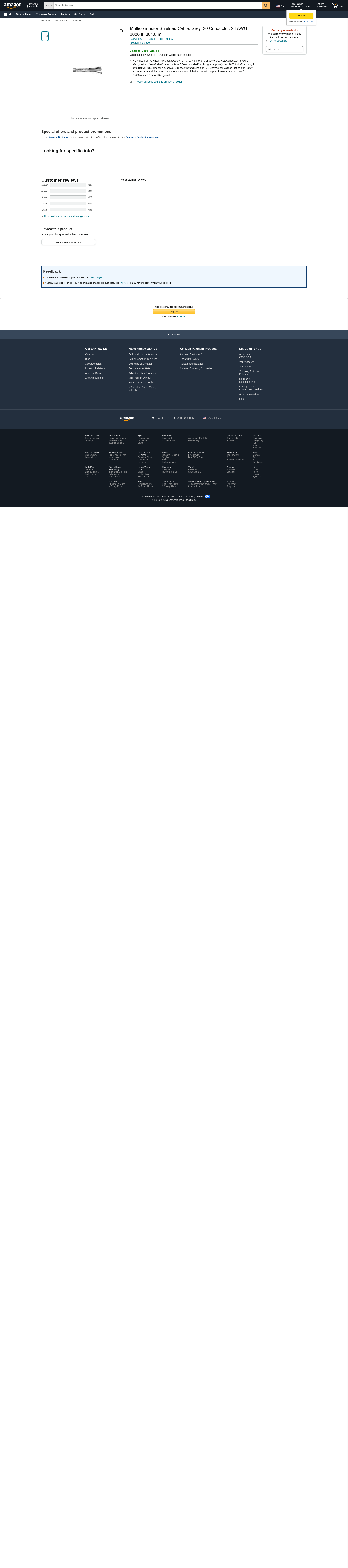 Multiconductor Shielded Cable, Grey, 20 Conductor, 24 AWG, 1000 ft, 304.8 m