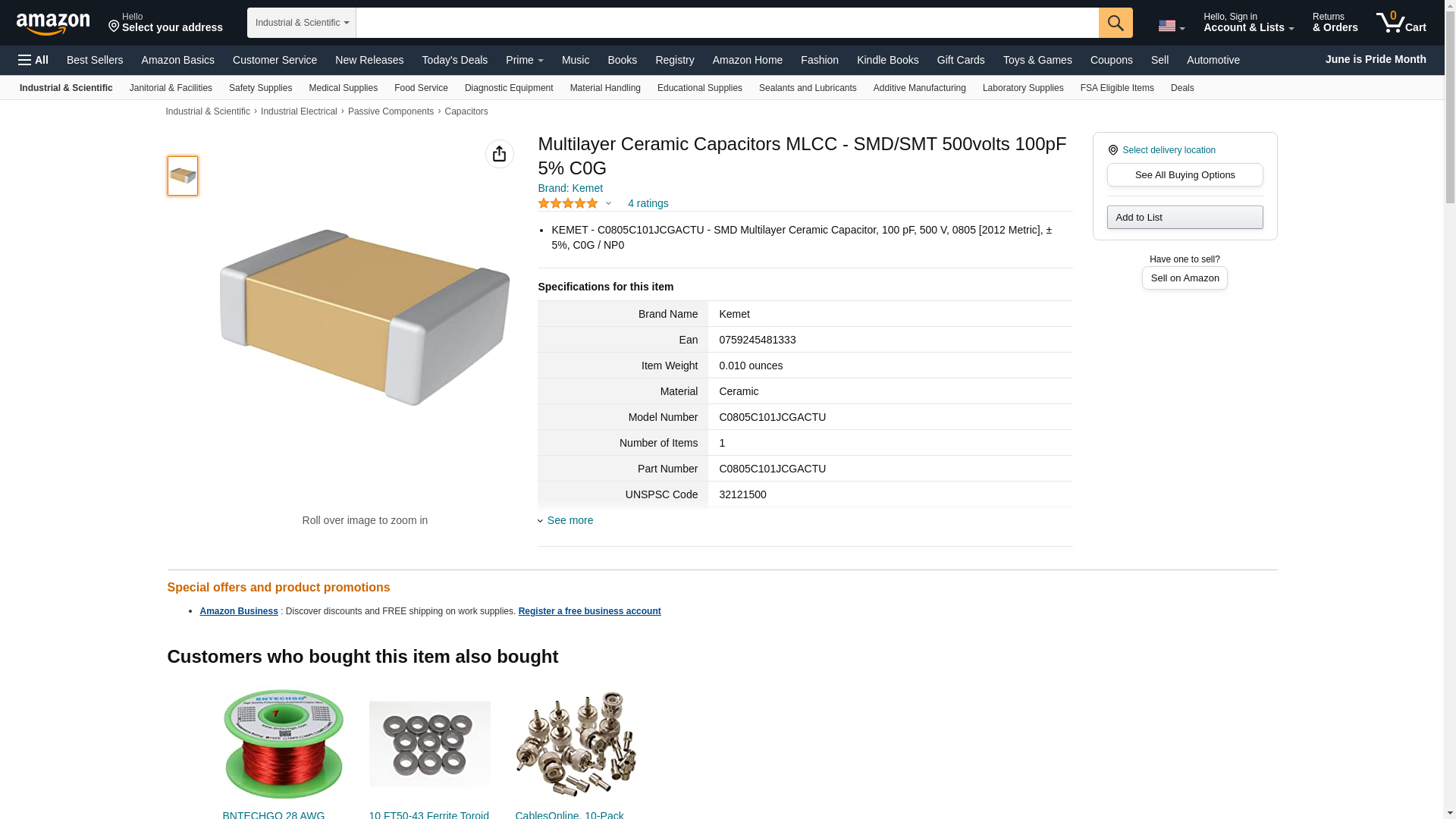 | Part number | C0805C101JCGACTU |