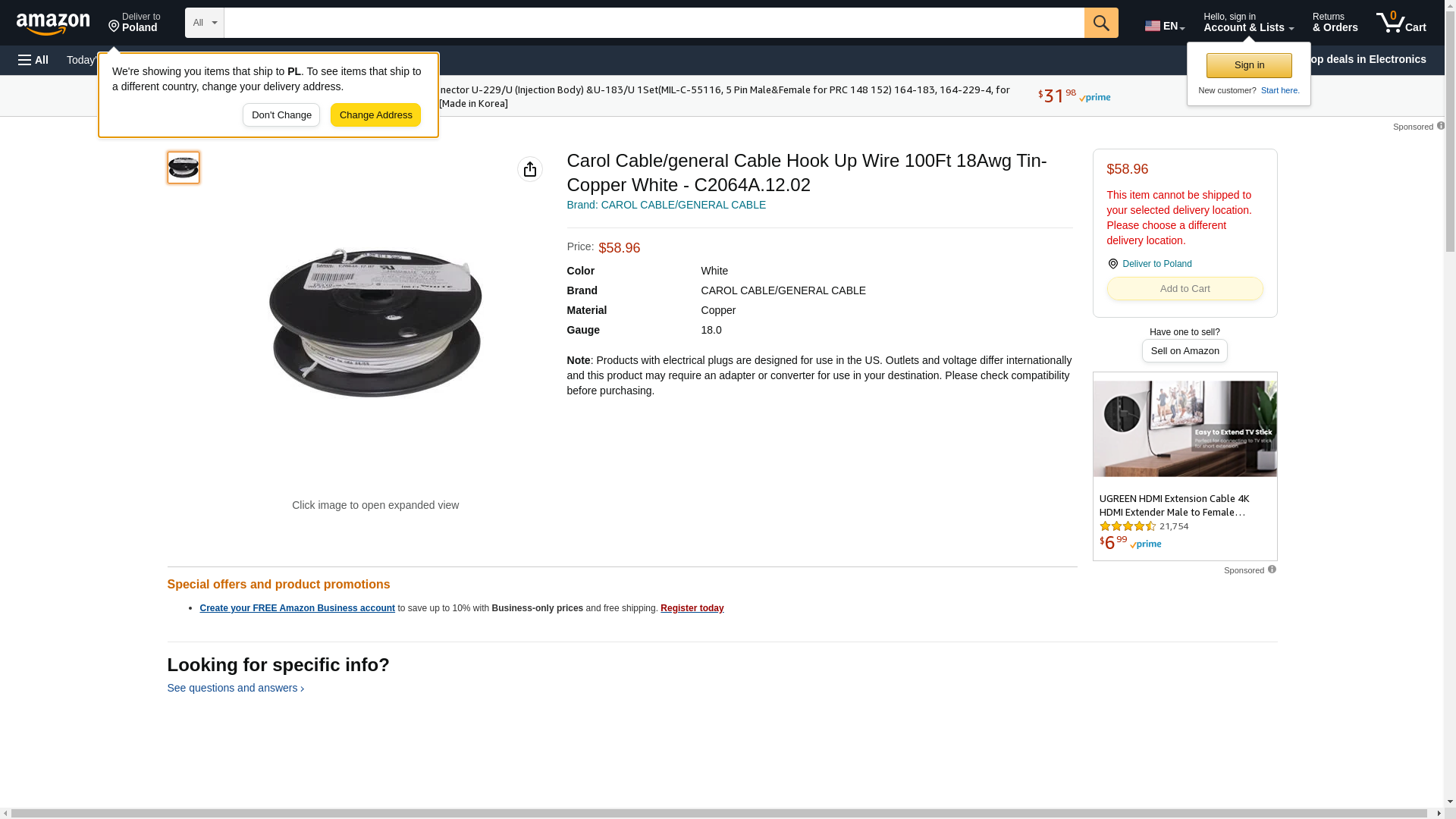 | Feature | CAROL CABLE C2064A.12.02 HOOK-UP WIRE 100FT 18AWG TIN-COPPER WHT |