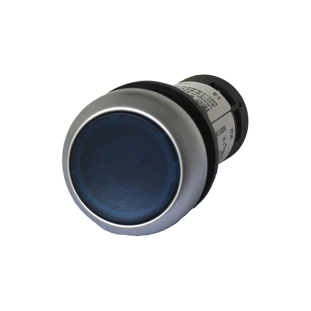 Eaton C22-DRLH-B-K10-120 Pushbutton Switch, Illuminated, Extended Mounted, Maintained Operation, Blue LED Color, Silver Bezel Color, SPST-NO Contacts, 120VAC Voltage