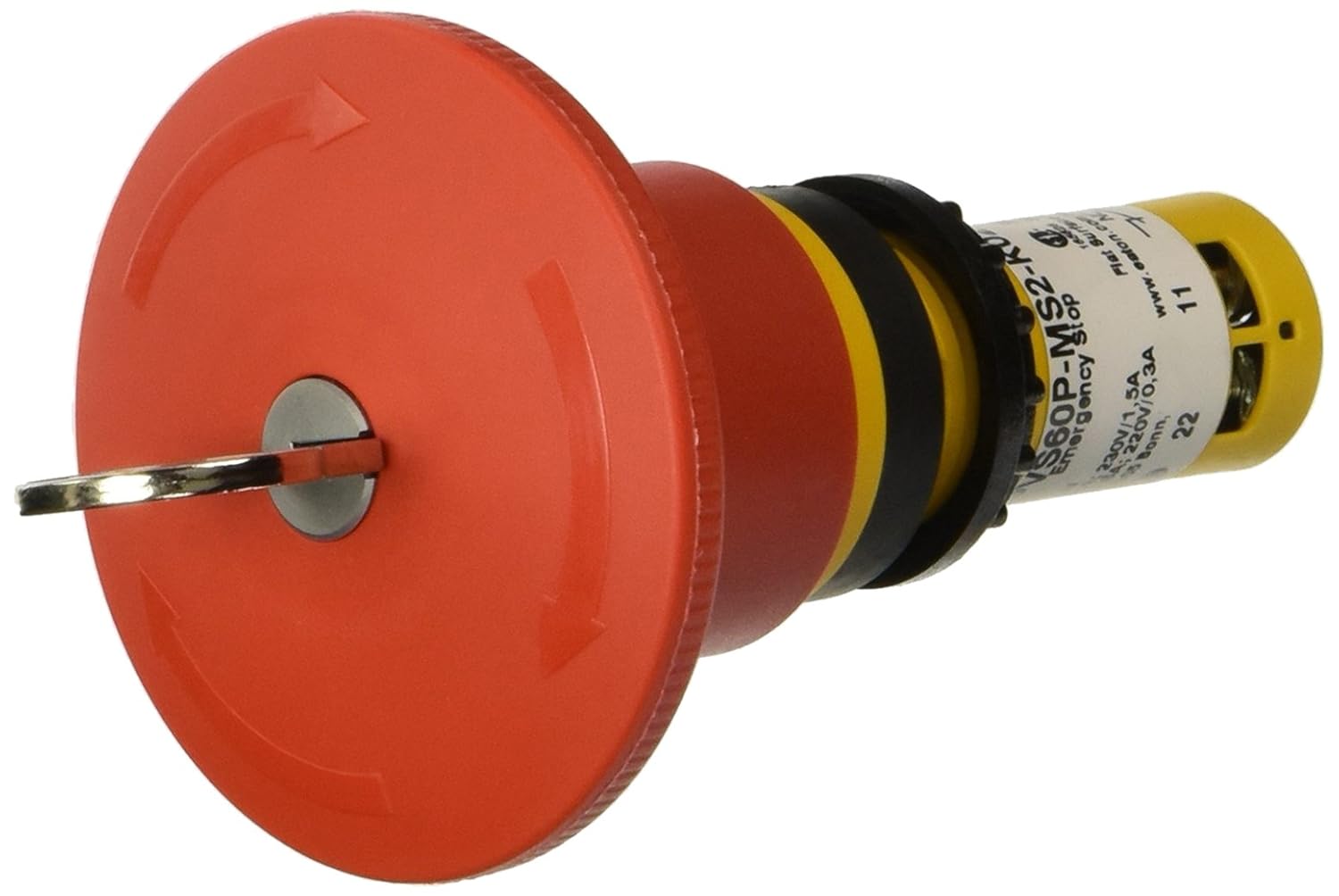Eaton C22-PVS60P-MS2-K02 Emergency Stop Switch, 22mm Diameter, Key Release Operation, 60mm Operator Size, DPST-2 NC Contacts