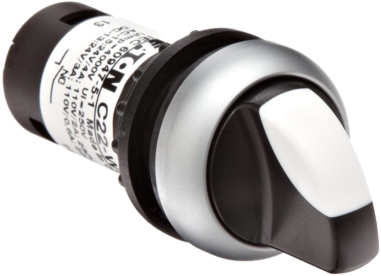 Eaton C22-WRK-K10 Knob Type Selector Switch, 2 Positions, Maintained Operation, Silver Bezel, SPST-NO Contacts