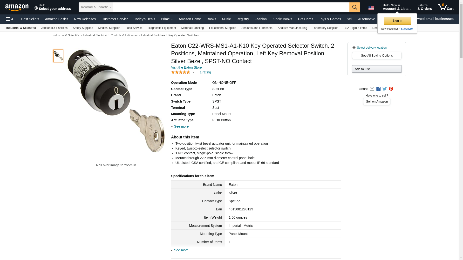 - Eaton C22-WRS-MS1-A1-K10 Non-Illum Selectr Swtch,Left/Right Key