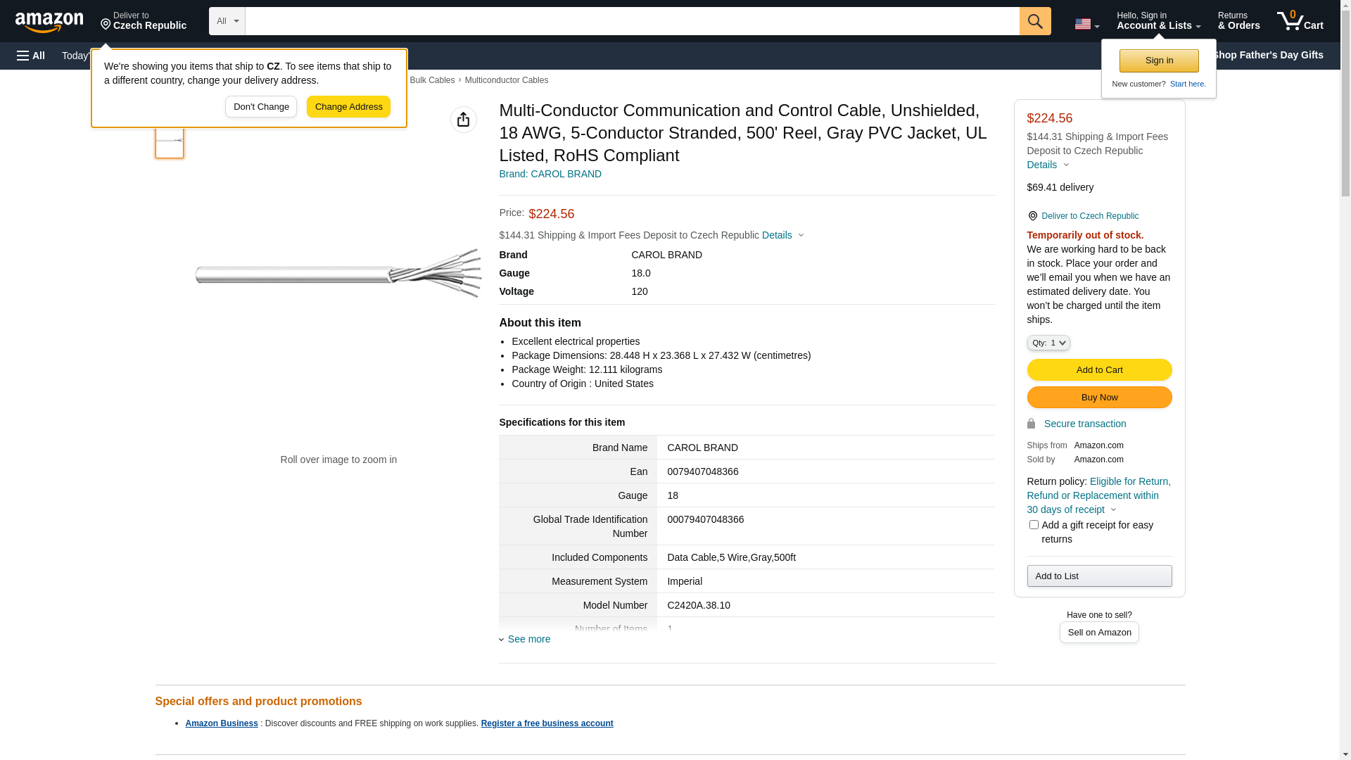 Carol Cable/general Cable Unshielded Multiconductor Cable 5 Conductor 18Awg 500Ft - C2420A.38.10