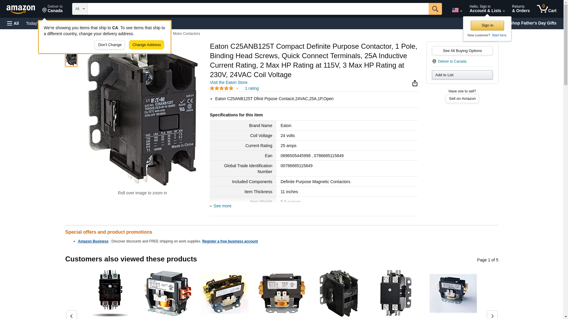- Eaton C25ANB125T Dfinit Prpose Contactr,24VAC,25A,1P,Open