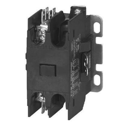 <br /><br /> Item: Definite Purpose Contactor<br /> Number of Poles: 1<br /> Full Load Amps-Resistive: 40<br /> Full Load Amps-Inductive: 30<br /> Coil Volts: 24VAC<br /> HP @ 1 Phase - 120V: 2<br /> HP @ 1 Phase - 240V: 5<br /> Height: 3.19"<br /> Width: 1.97"<br /> Depth: 2.32"<br /> Enclosure NEMA Rating: No Enclosure<br /> Hz: 50/60<br /> Reversing: No<br /> Series: F1<br /> Includes: Metal Mounting Plate, Binding Head Screw with Quick Connect Terminals<br /> Standards: UL, CSA, CE