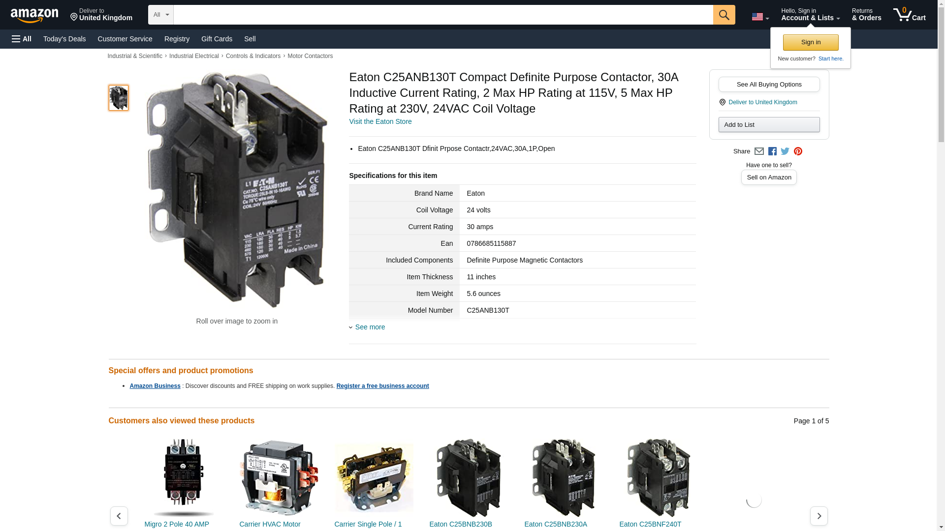 - Eaton C25ANB130T Dfinit Prpose Contactr,24VAC,30A,1P,Open