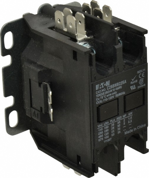 Eaton C25BNB225A Compact Definite Purpose Contactor, 25A Inductive Current Rating, 2 Max HP Rating at 115V, 3 Max HP Rating at 230V, 120VAC Coil Voltage