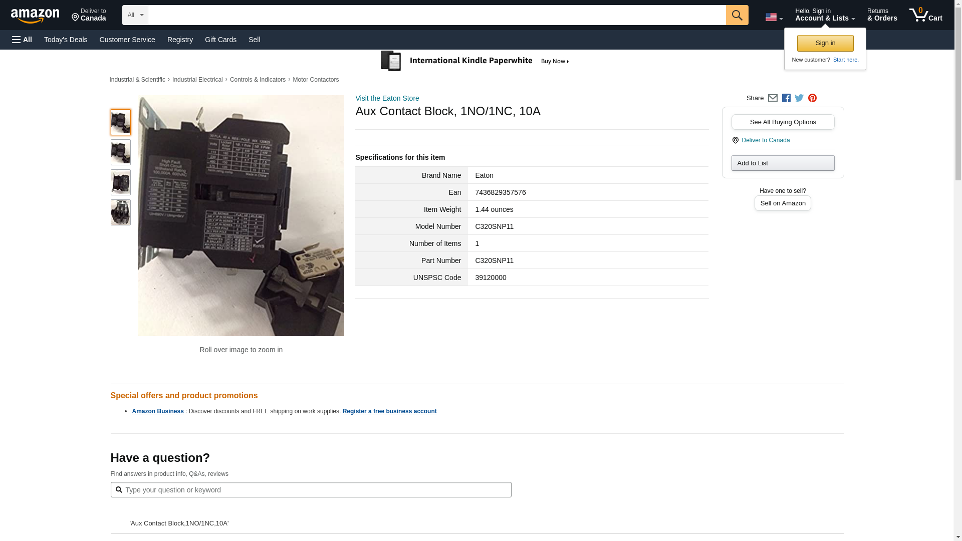 - Eaton C320SNP11 Aux Contact Block,1NO/1NC,10A