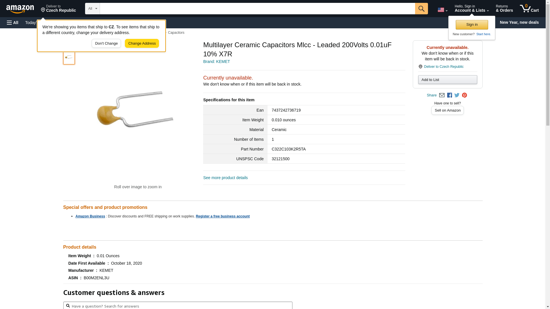 ![]() Radwell | C322C103K2R5TA | 1 | 1 | ||