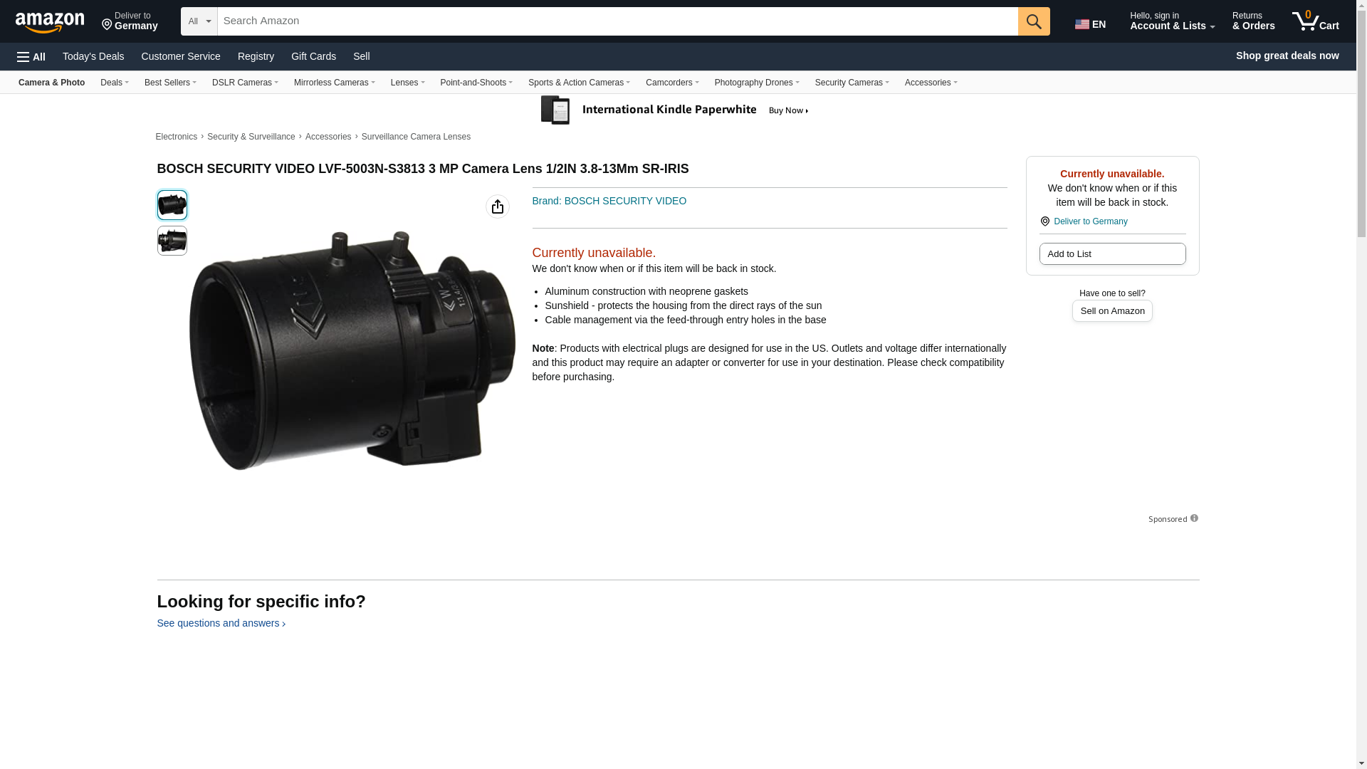 BOSCH SECURITY VIDEO LVF-5003N-S3813 3 MP Camera Lens 1/2IN 3.8-13Mm SR-IRIS