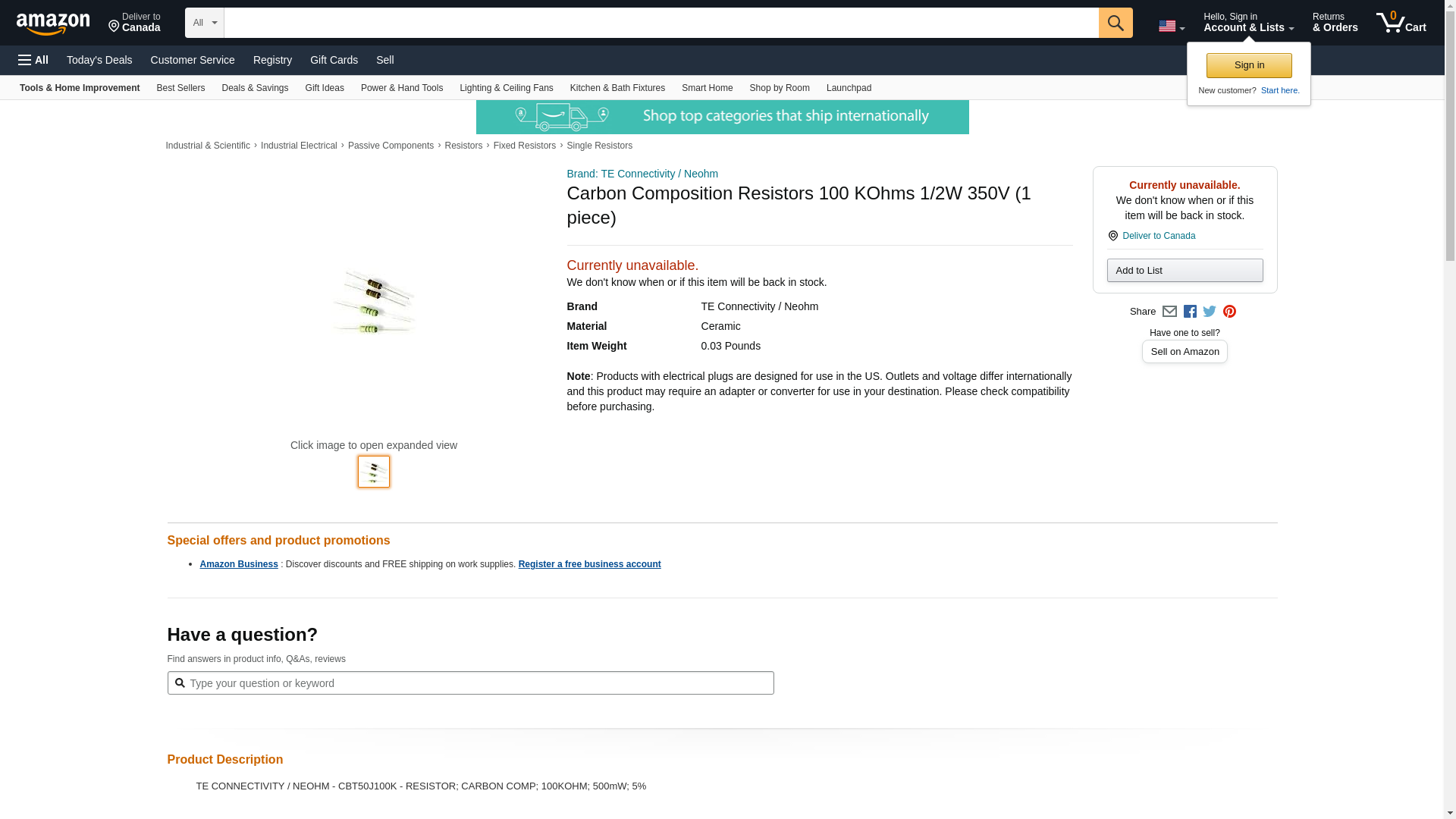 CBT50J100K TE Connectivity Passive Product | Resistors | DigiKey
