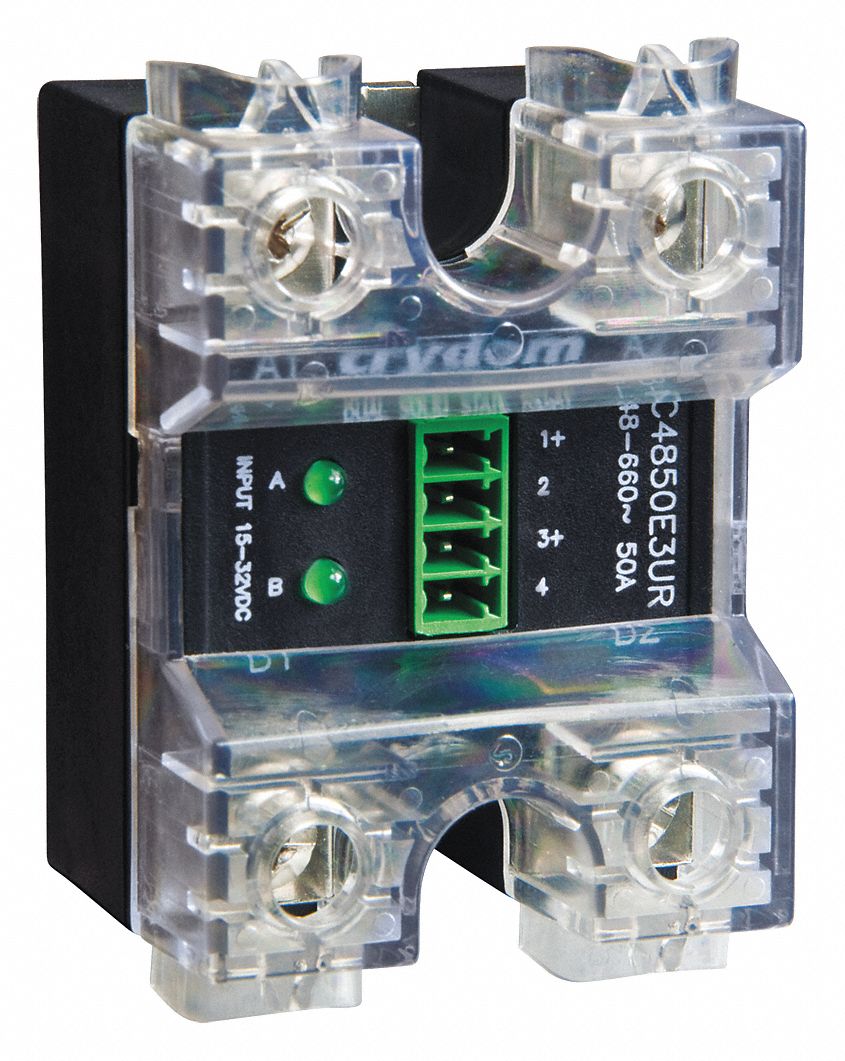 | Feature | This dual, solid-state relay is designed for use with SCR output for heavy loads |