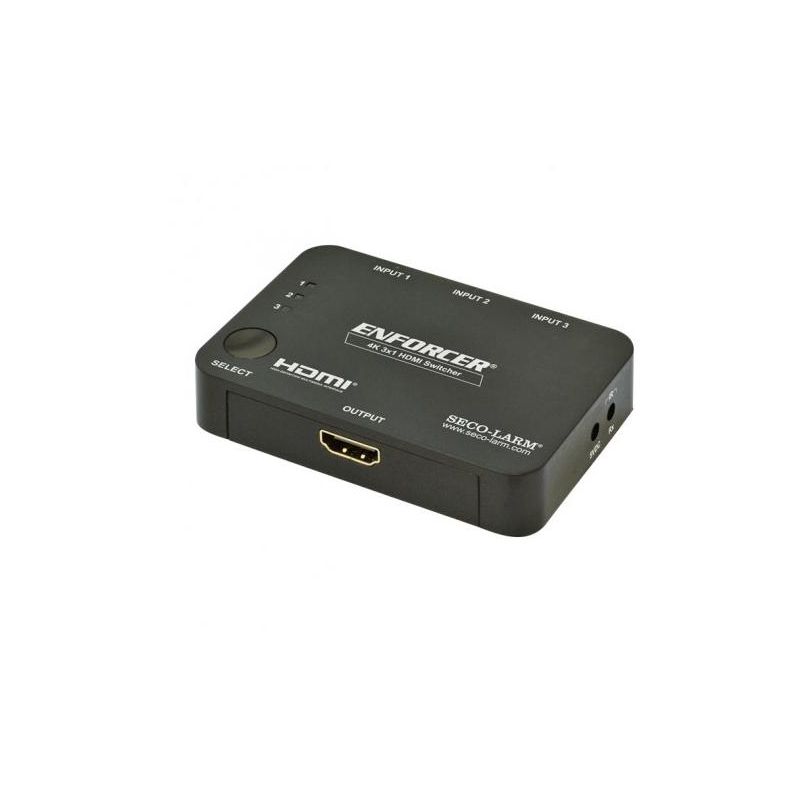 <b>SECO-LARM MVS-AH31-01NQ ENFORCER 3 HDMI Switcher Inputs, Add up to three HDMI inputs to almost any high-definition TV or HDMI display, Supports up to 4K/2K resolution and 3D video</b> <p>SECO-LARM MVS-AH31-01NQ ENFORCER 3 HDMI Switcher Inputs, Add up to three HDMI inputs to almost any high-definition TV or HDMI display, Supports up to 4K/2K resolution and 3D video</p></br> <b>Key Features</b></br><ul> <li>Add up to three HDMI inputs to almost any high-definition TV or HDMI display</li> <li>Supports up to 4K/2K resolution and 3D video</li> <li>Individual status LEDs for each HDMI input</li> <li>Switch will automatically select the active input for added convenience</li> <li>Use with IR over HDMI Kit (MVE-PN11-01Q) to control the HDMI switcher or HDMI sources via remote control even if they have been hidden away</li> <li>Includes remote control for switching between inputs</li></ul></br> <b>Specifications</b></br><ul> <li>Input Video Signal: 3.3V</li> <li>Video Formats Supported: High-speed HDMI, HDCP 1.4</li> <li>Audio Formats Supported: LPCM, Dolby-AC3, DTS7.1, DSD</li> <li>Input DDC Signal: 5Vp-p (TTL)</li> <li>Output Video: HDMI</li> <li>Deep Color: 48bit</li> <li>Resolutions Supported: 4K/1080p/1080i/720p/576p/576i/480p/480i</li> <li>Video Amplifier Bandwidth: 10.2Gbps</li> <li>Video Input Connector: 3x HDMI type A 19-pin female</li> <li>Maximum Input Cable Length: 24AWG (15m)/26AWG (10m)/28AWG (5m)</li> <li>Video Output Connector: 1x HDMI type A 19-pin female</li> <li>Maximum Output Cable Length: 24AWG (15m)/26AWG (10m)/28AWG (5m)</li> <li>Operating Voltage: 5VDC</li> <li>Power Supply: USB power</li> <li>Current Draw: 150mA@5VDC</li> <li>Operating Temperature: 32°~104°F</li> <li>IR Pass-Through: 38kHz</li> <li>Operating Humidity: 20~90% RH (without condensation)</li> <li>Dimensions: 3-7/16" x 2-3/8" x 3/4"</li> <li>Weight: 2.1-oz</li> <li>ESD Protection: ±8kV (air-gap discharge)/±4kV (contact discharge)</li></ul>