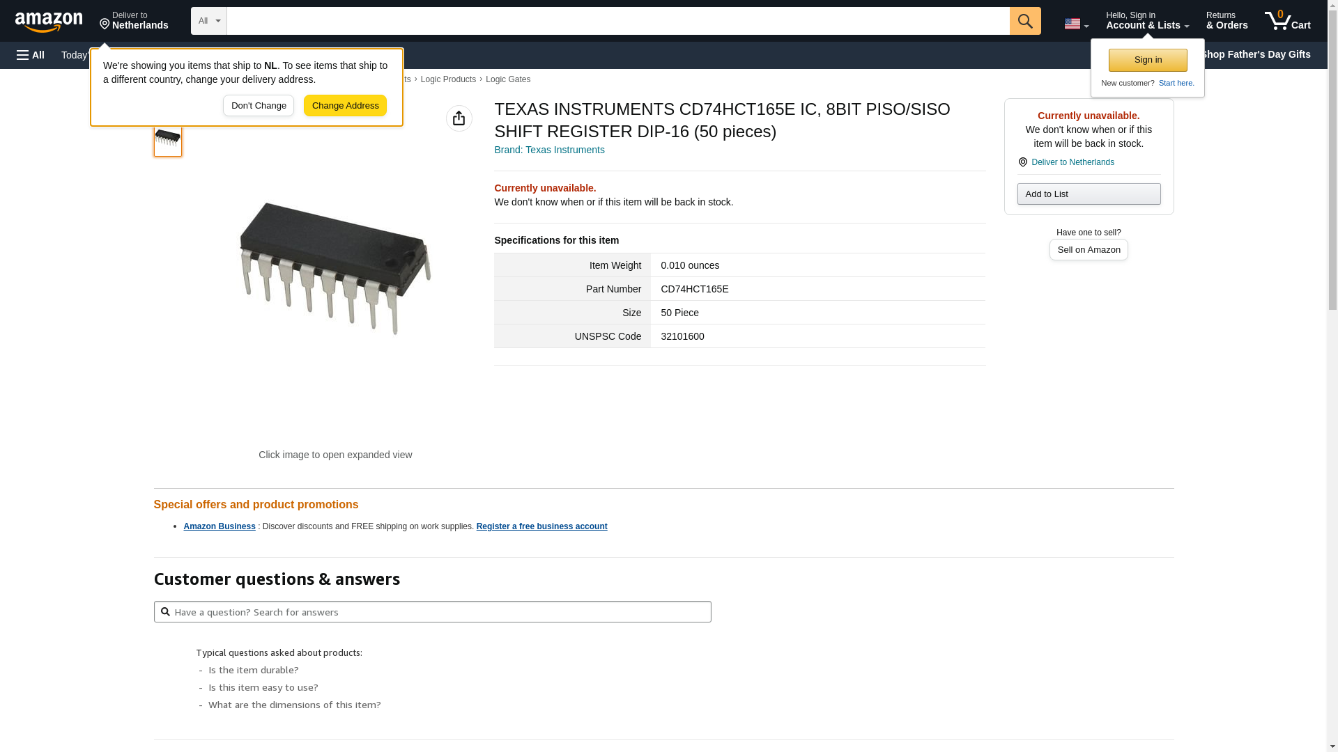 | 1Source | CD74HCT165E | 1 | 1 | ||